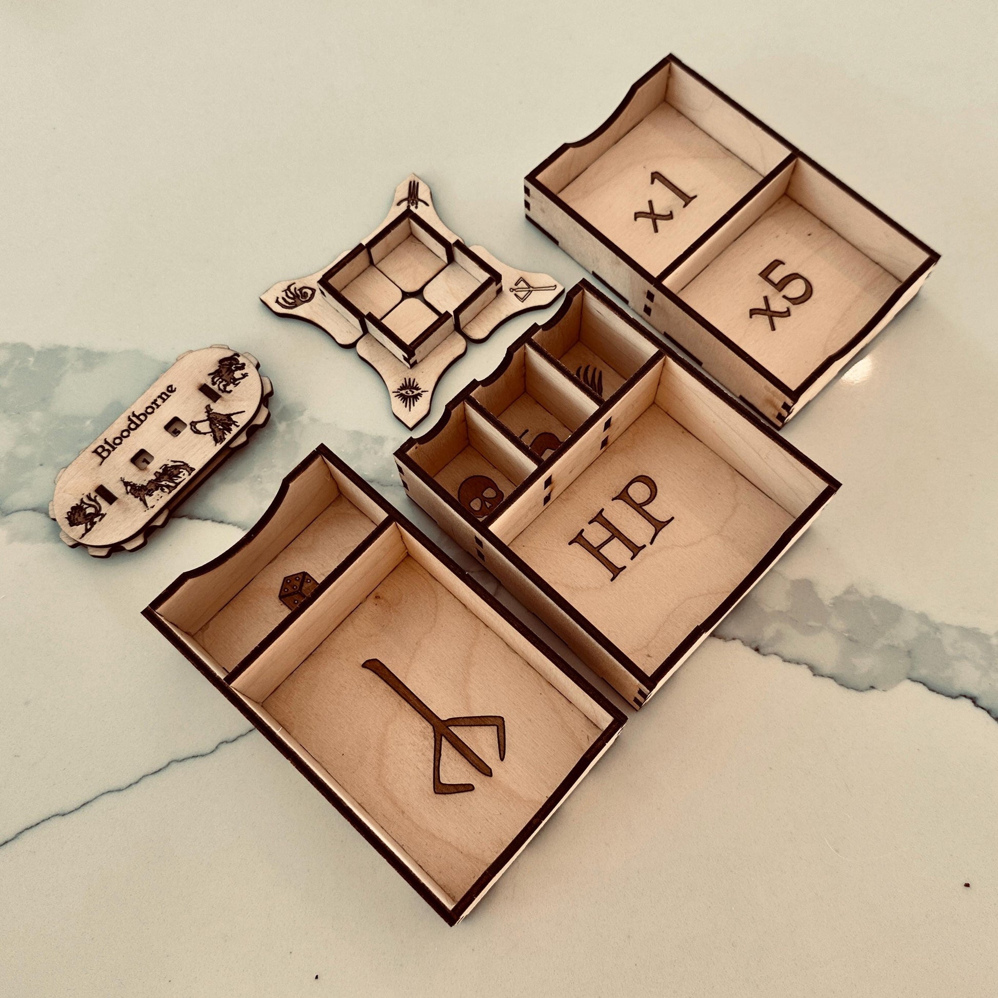 Our Box organizer is designed for real hardcore hunters who demand the perfect blend of organization, immersion, and style in their games of Bloodborne: The Board Game.